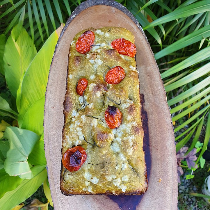 Muito disseminada pelos quintais, a ora-pro-nóbis é uma verdura abundante, deliciosa e nutritiva. Suas folhas, frutos, flores e caules jovens são comestíveis. Os usos podem ser dos mais diversos e, nesta receita, ela dá um sabor delicioso à focaccia.