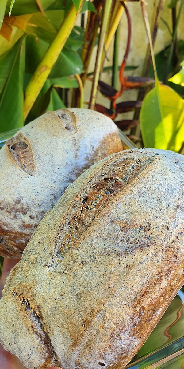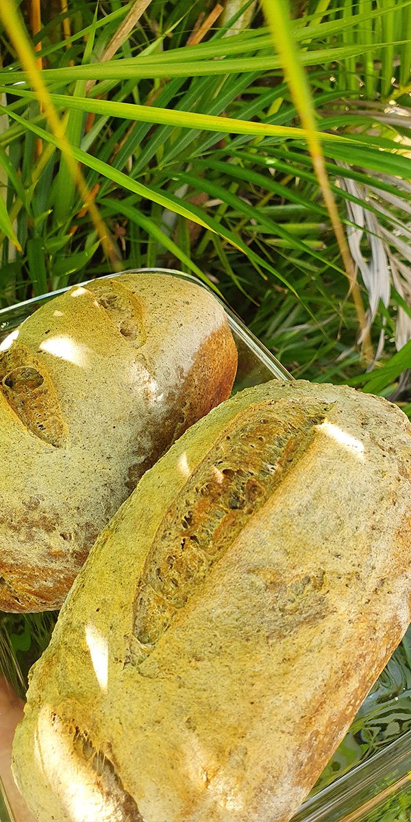 Para essa receita, usei a inusitada farinha de cambuci, feita com a fina casca do fruto. Ela tem um sabor super intenso e só um pouco dela (20g) já foi suficiente para deixar o pão saboroso e com uma cor amarronzada.