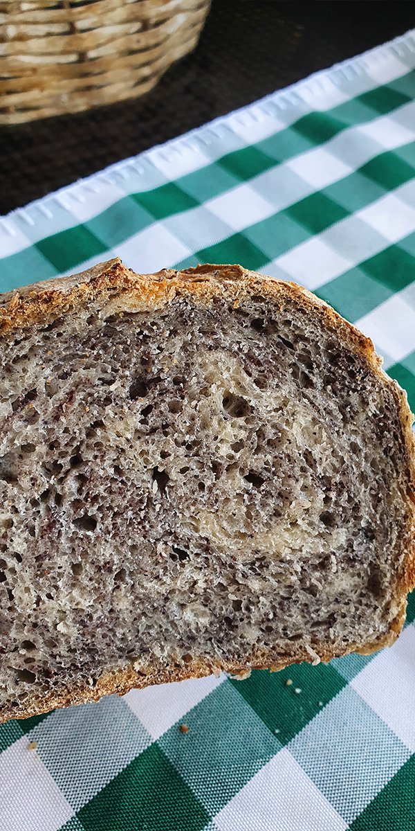 Para essa receita, usei a inusitada farinha de cambuci, feita com a fina casca do fruto. Ela tem um sabor super intenso e só um pouco dela (20g) já foram suficientes para deixar o pão saboroso e com uma cor amarronzada.